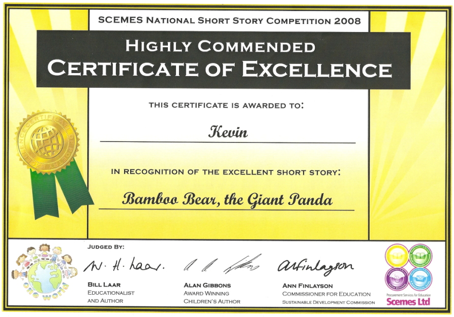 Competition Certificate for Kevin:
